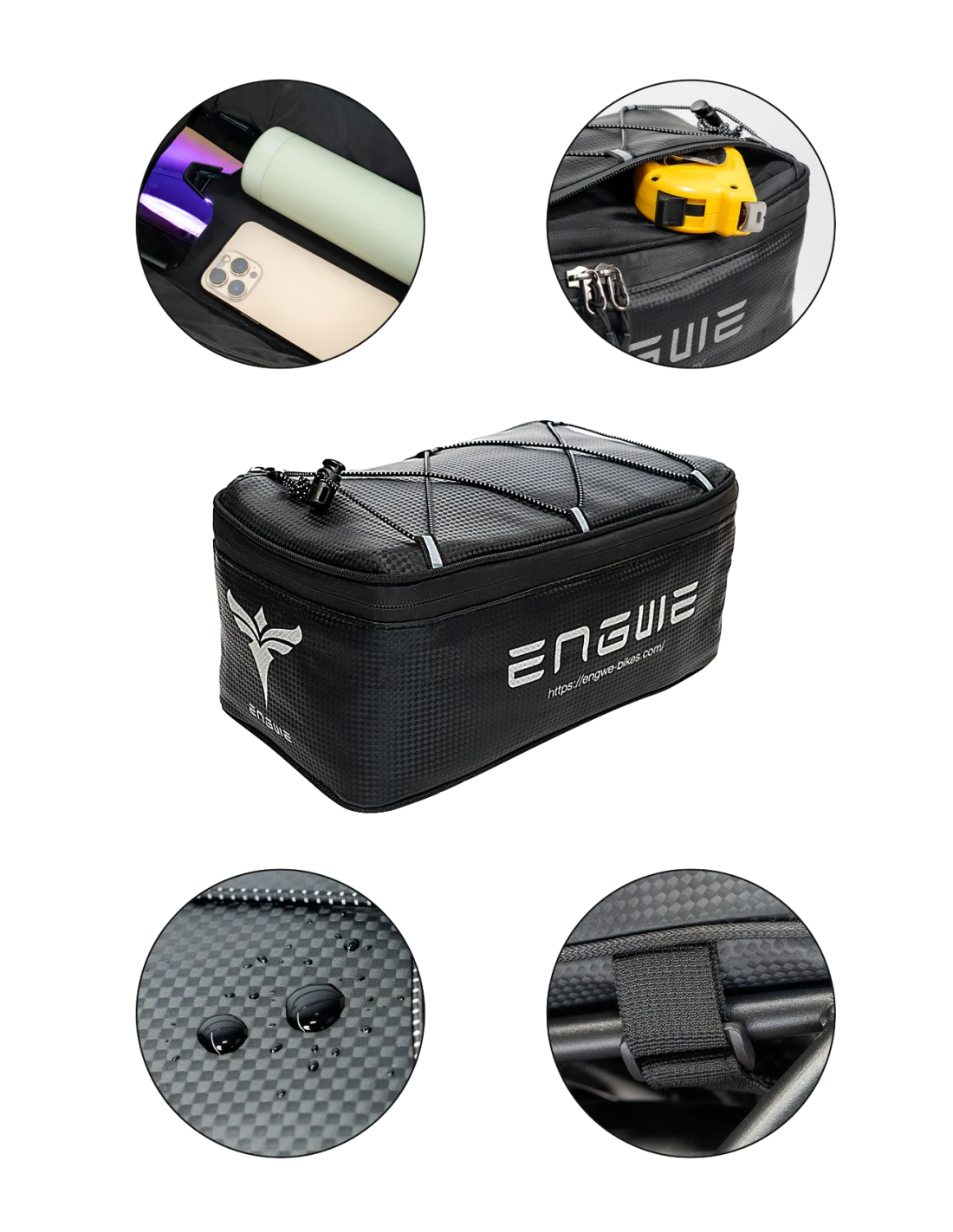 Optimisez le rangement de votre vélo avec le sac de 7L Engwe pour porte-bagage. Compact, robuste et imperméable, il est idéal pour transporter vos objets essentiels en toute sécurité.