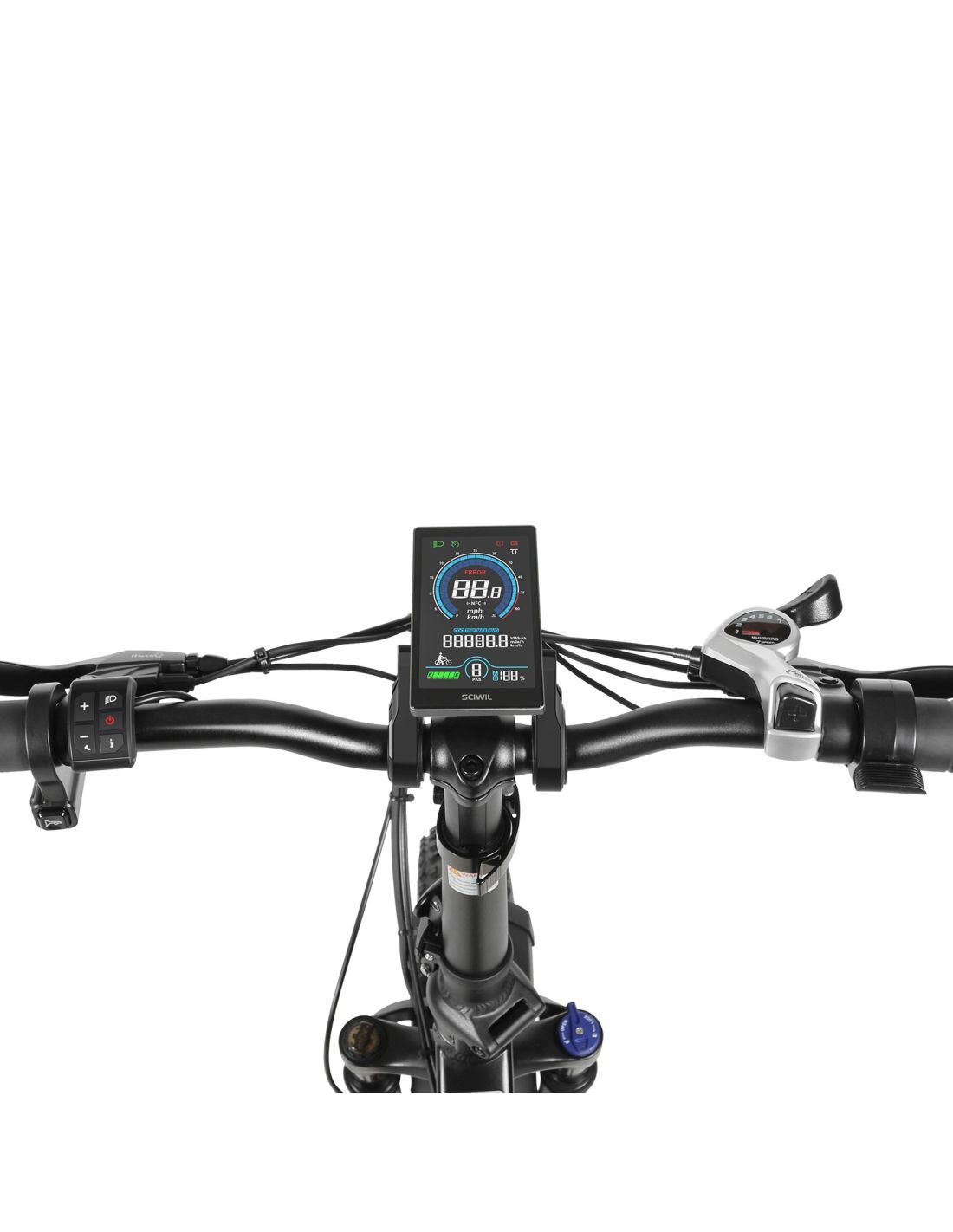 Avec un grand écran LED couleur intégré au guidon ergonomique, profitez d'une lisibilité optimale et d'une facilité de contrôle inégalée. Le guidon est équipé de commandes multifonctions, permettant de changer de mode de conduite à tout moment, pour une expérience de conduite personnalisée et sécurisée.