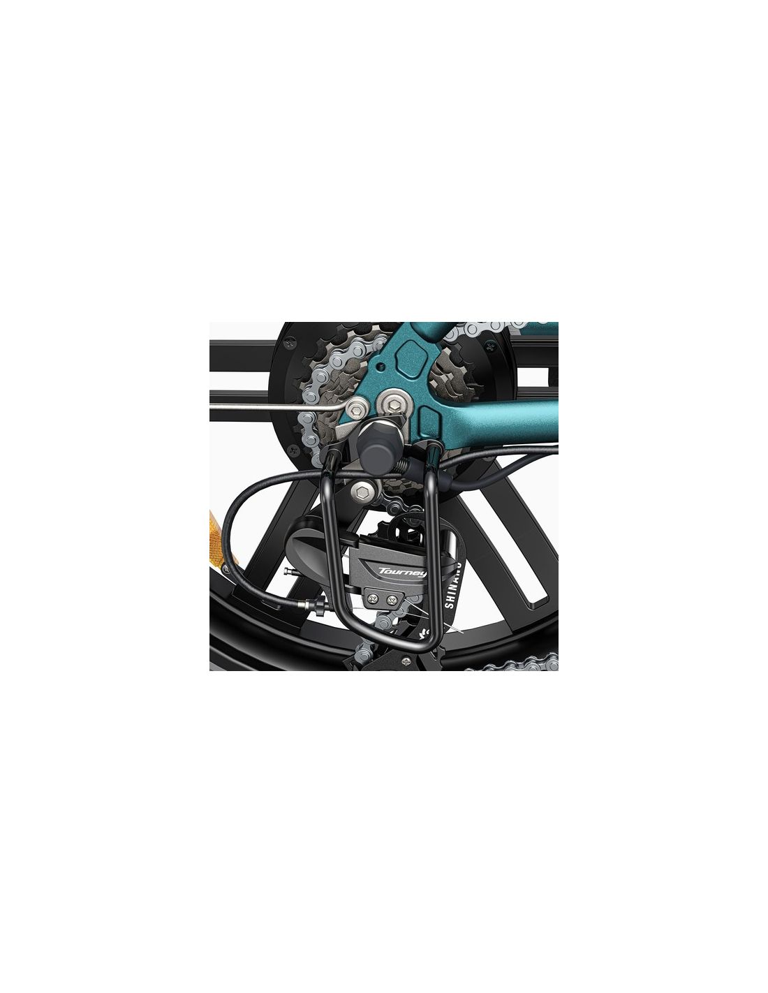 Le dérailleur Shimano à 7 vitesses assure des changements de vitesse fluides et précis, parfait pour s'adapter aux différentes conditions de conduite.