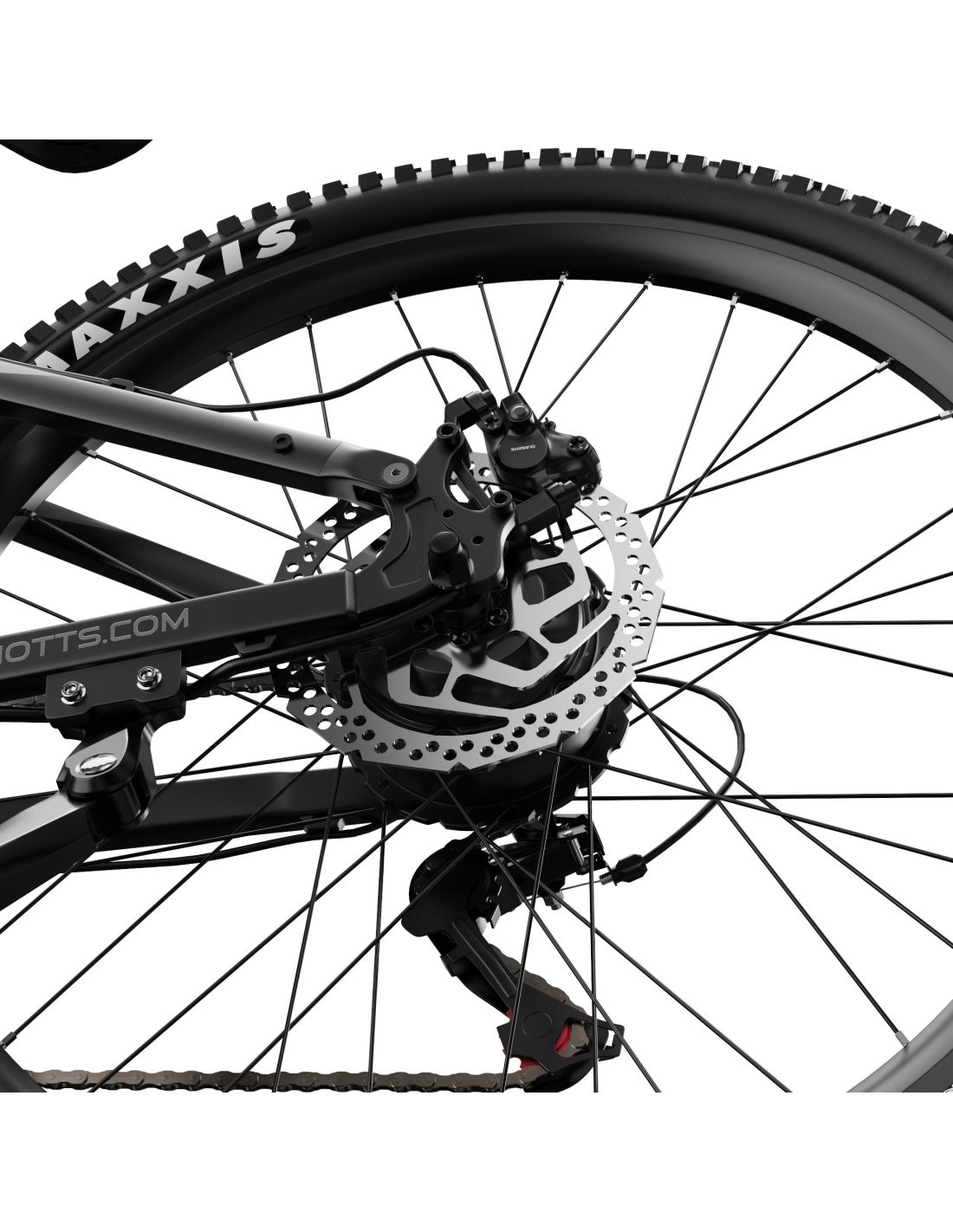Équipé de freins à disque hydrauliques Shimano MT200 à l'avant et à l'arrière, garantissant une grande efficacité de freinage. Les rotors de 180 mm assurent une excellente puissance de freinage pour une conduite en toute sécurité.