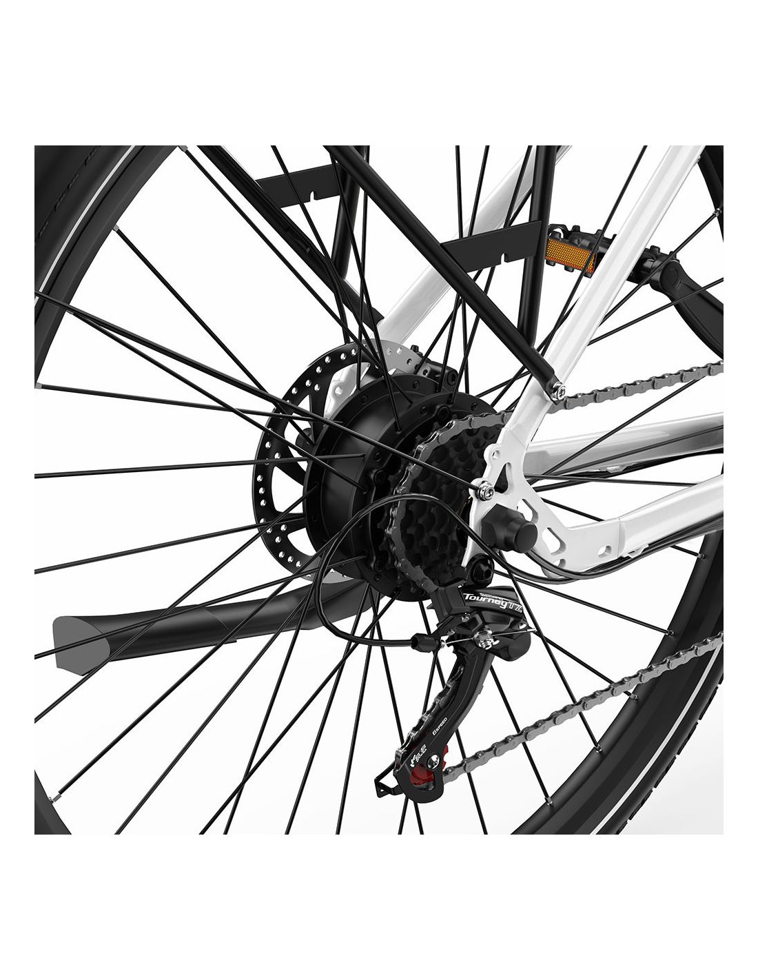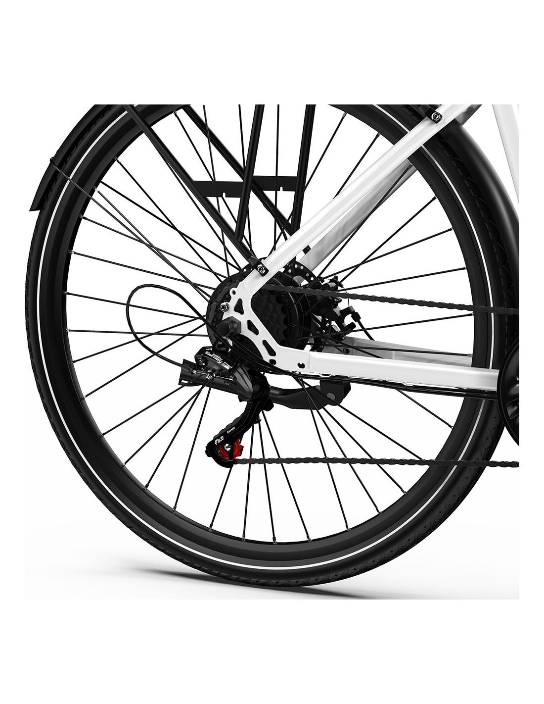 Les roues de 27,5 × 2,25 pouces offrent un excellent compromis entre vitesse, confort et adhérence. Douces en ville et stables sur les chemins irréguliers, elles vous permettent de rouler en toute confiance, partout et à tout moment.